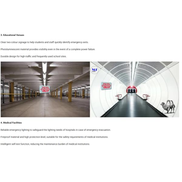 Emergency Exit Sign Lights IP43 Certified 3W LED 2h Backup Waterproof Fire-Resista Photoluminescent Factory School for Indoor Commercial Buildings Images |